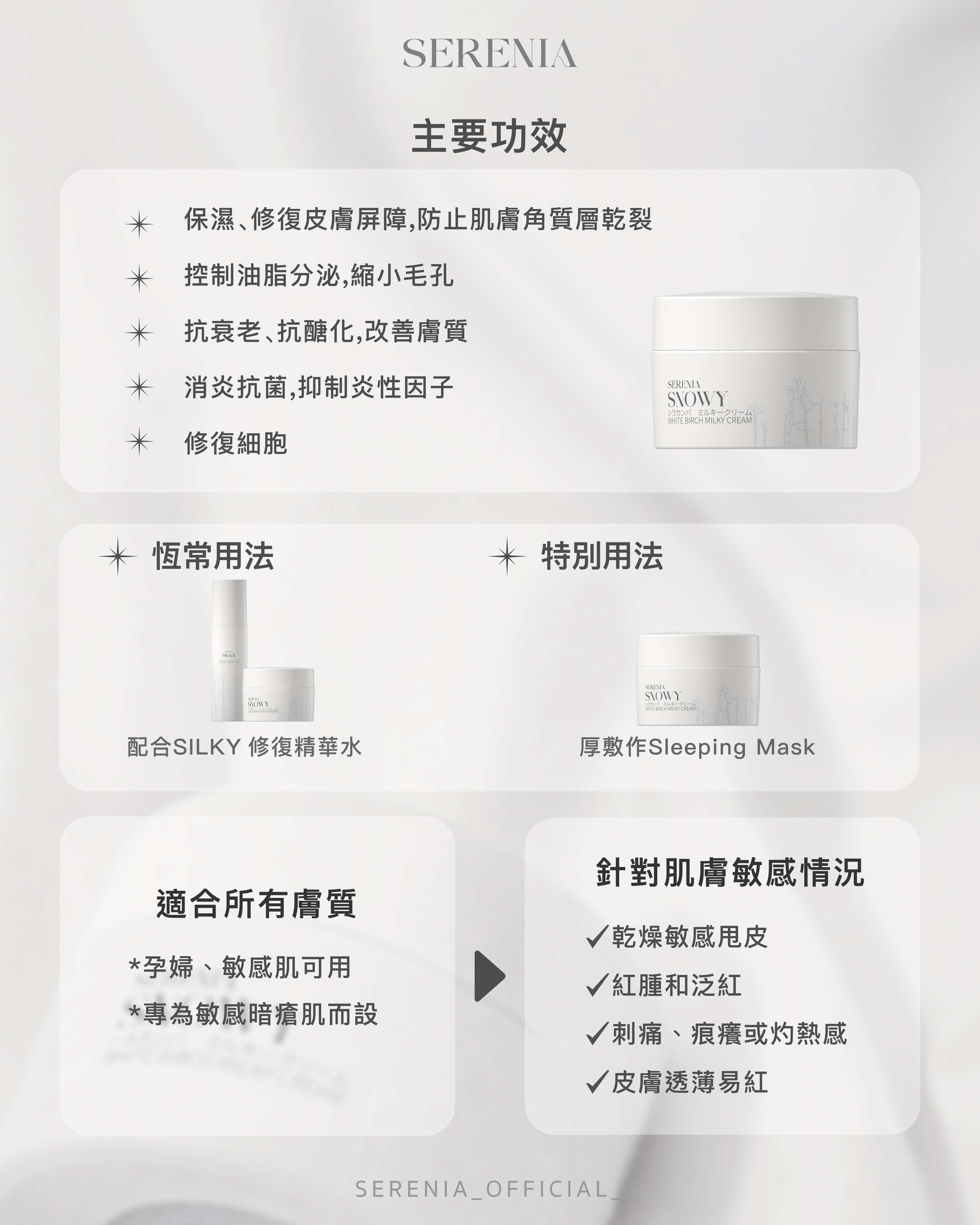 ✦ SNOWY 白樺樹晚安修復抗炎奶霜 50ml